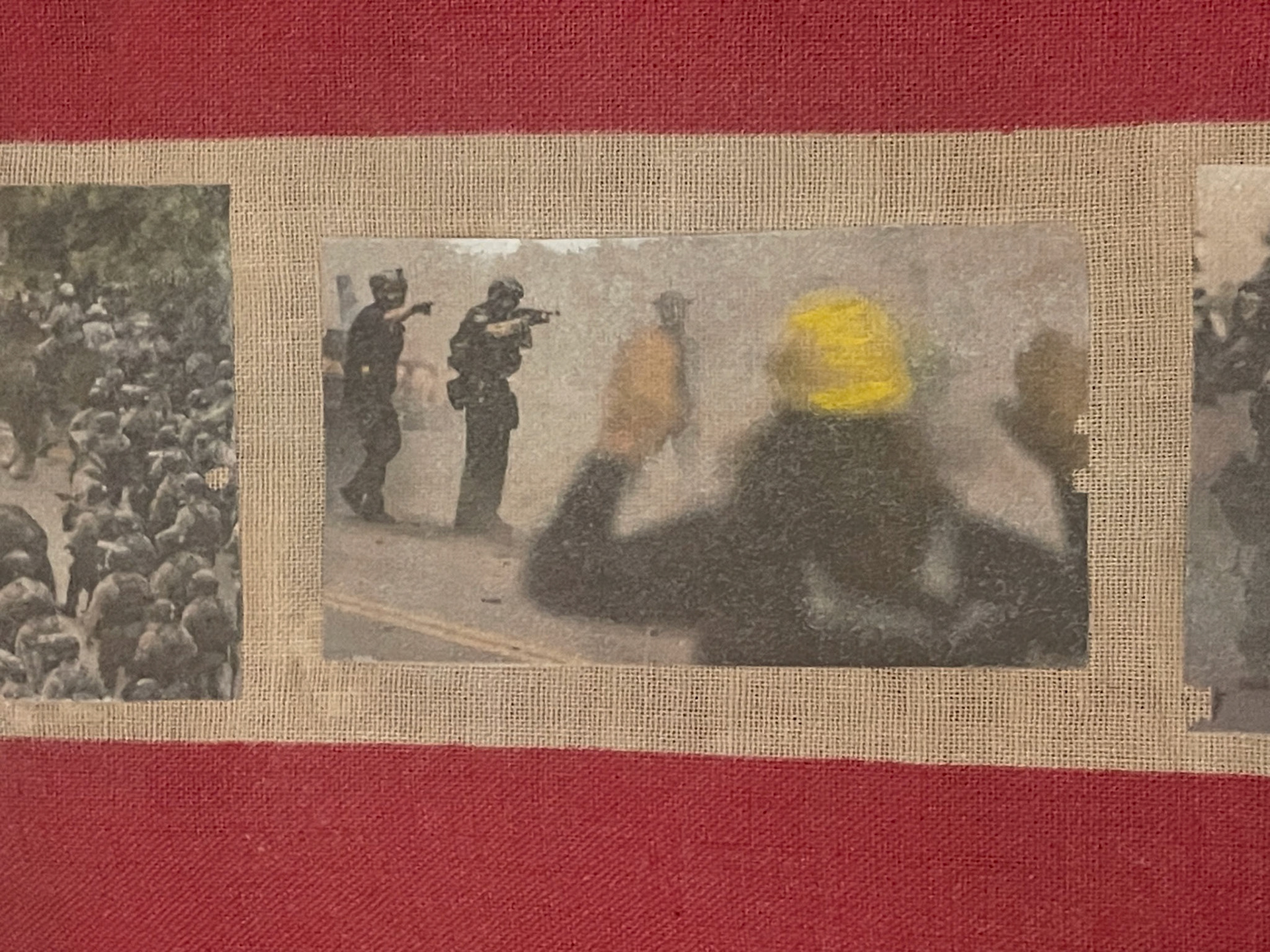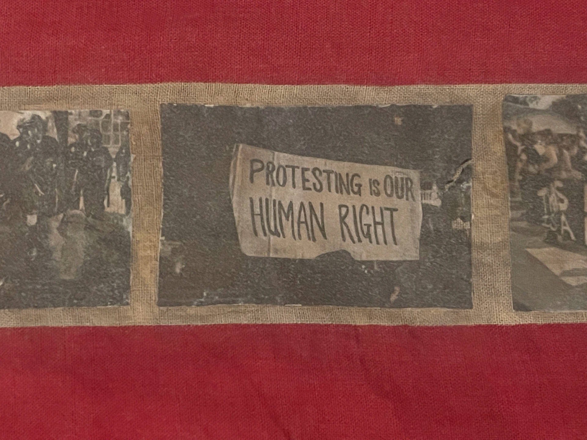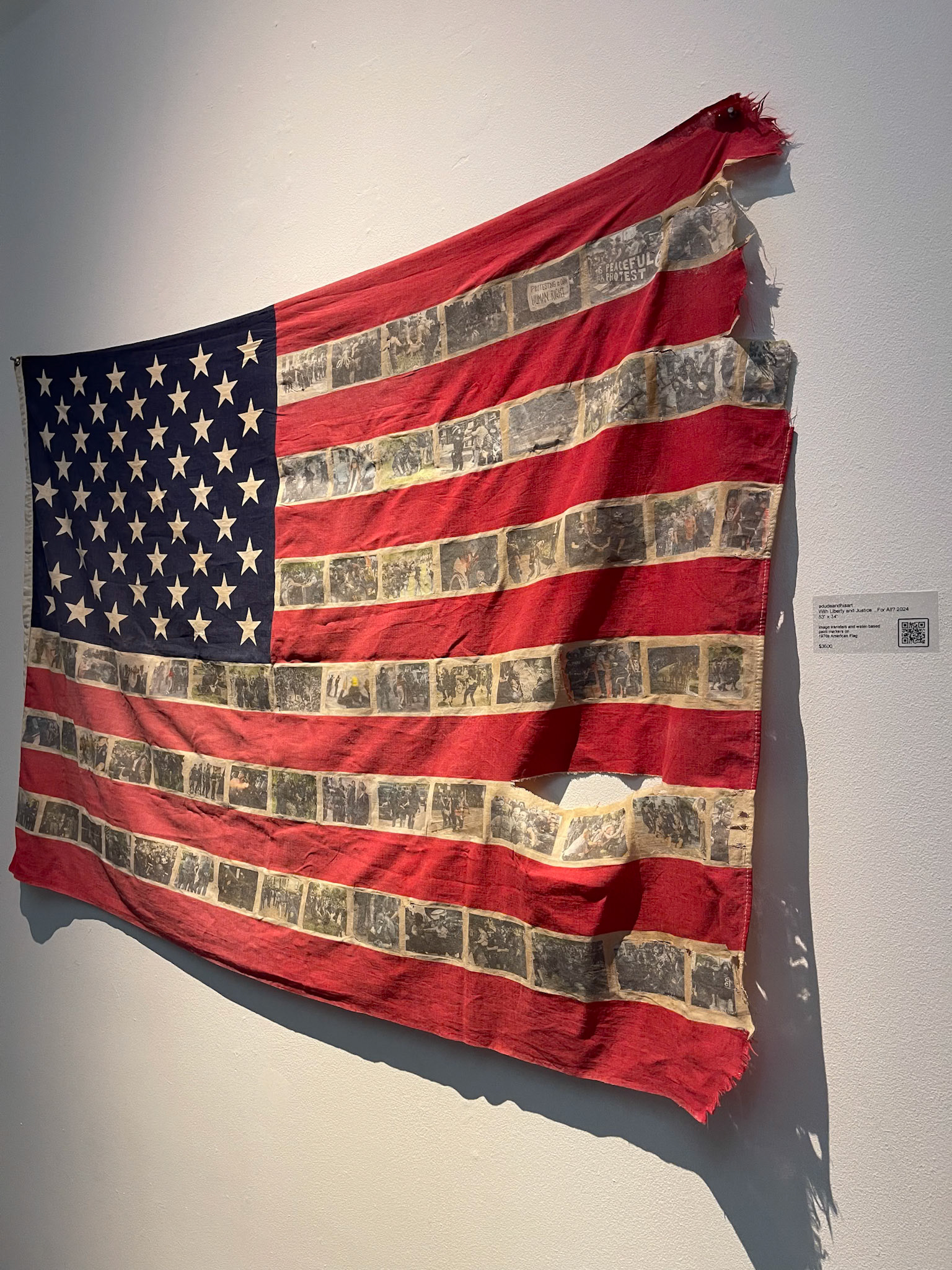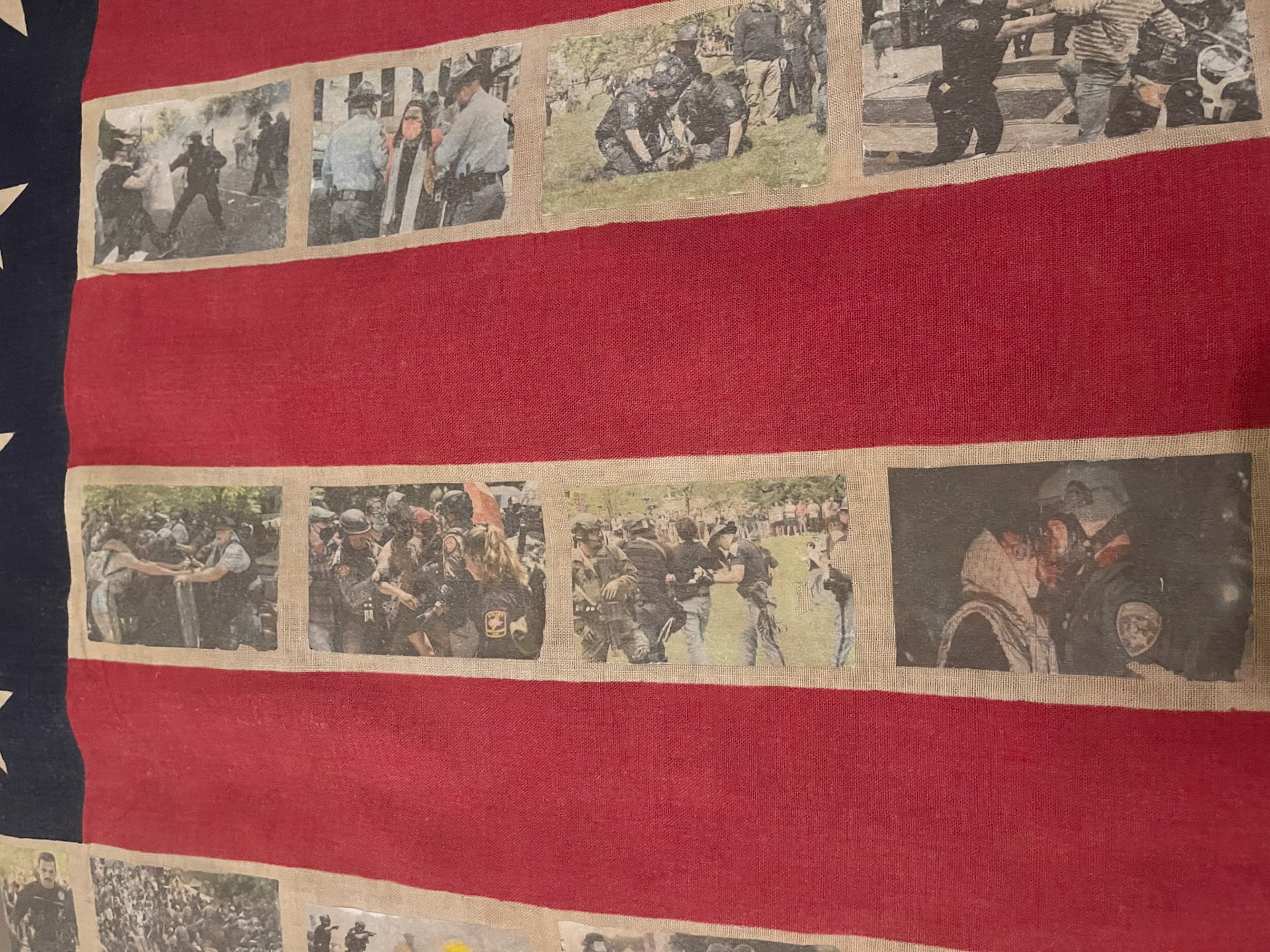 1970s American flag containing image transfers of peaceful protests from 2020-2024